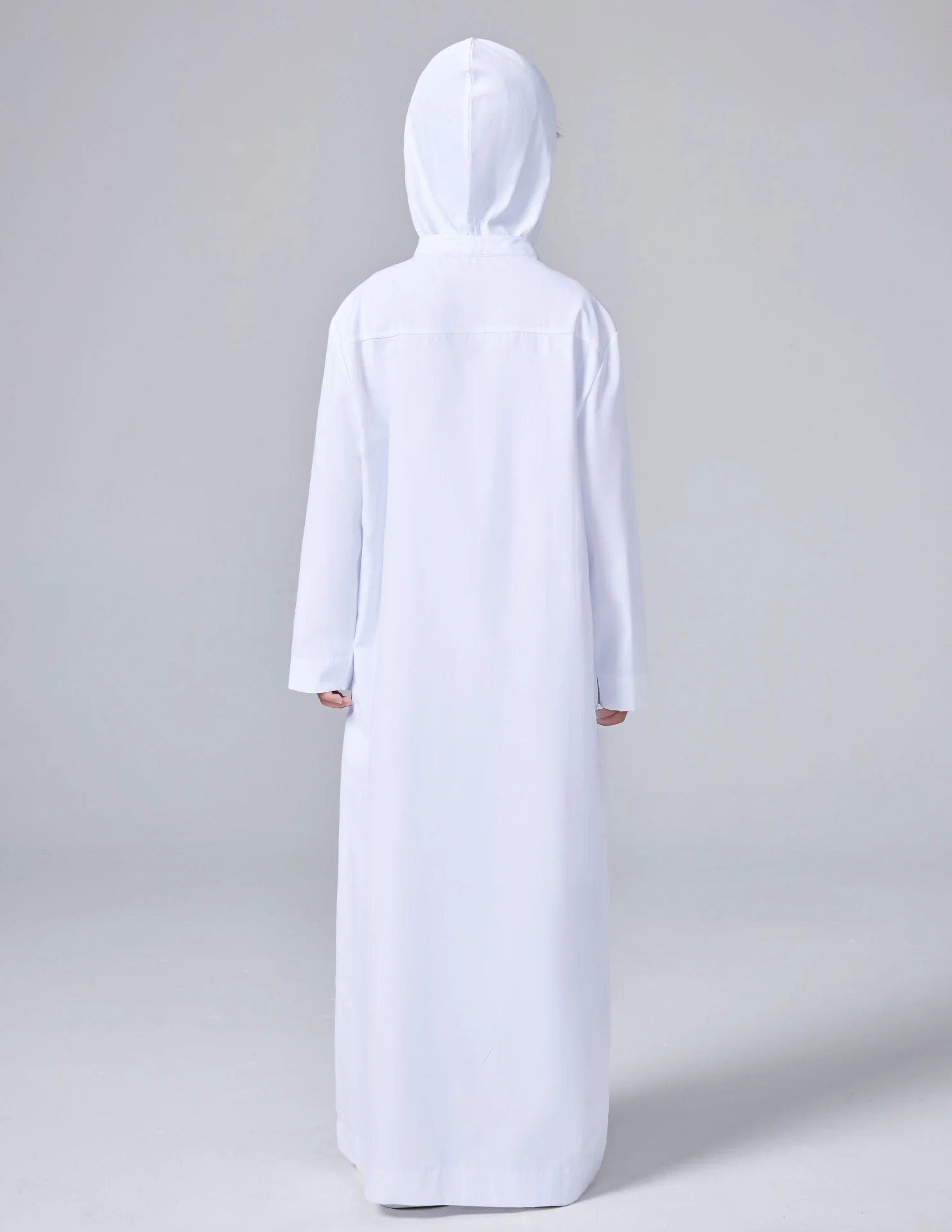 Looking for the perfect thobe for your young boy? Our white boys' thobe with hoodie is the ideal choice. Designed with comfort and style in mind, this kids' thobe is perfect for everyday wear, school, or special occasions like Eid.