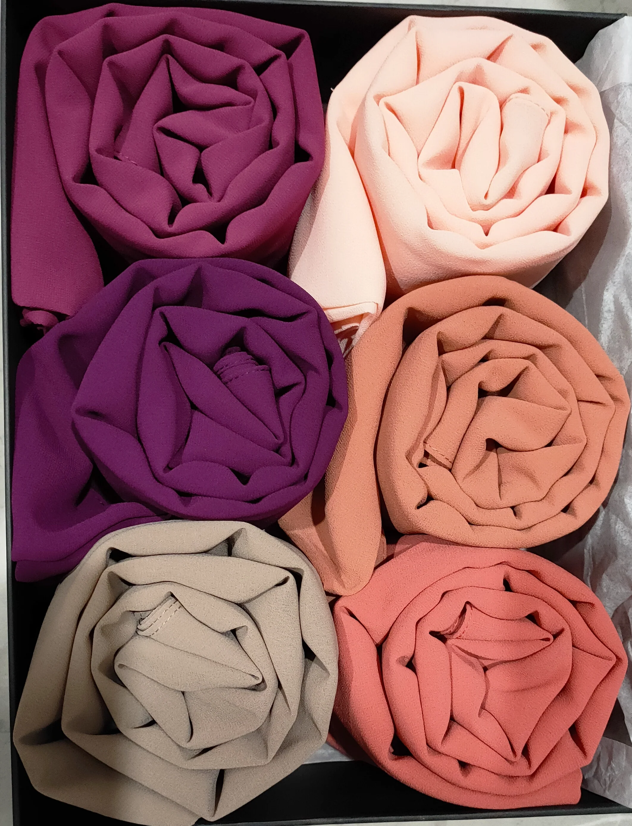Chiffon Hijab Premium Gift Set | Adorable Range (6 Elegant Premium Chiffon Hijabs wt Bonus Pins)