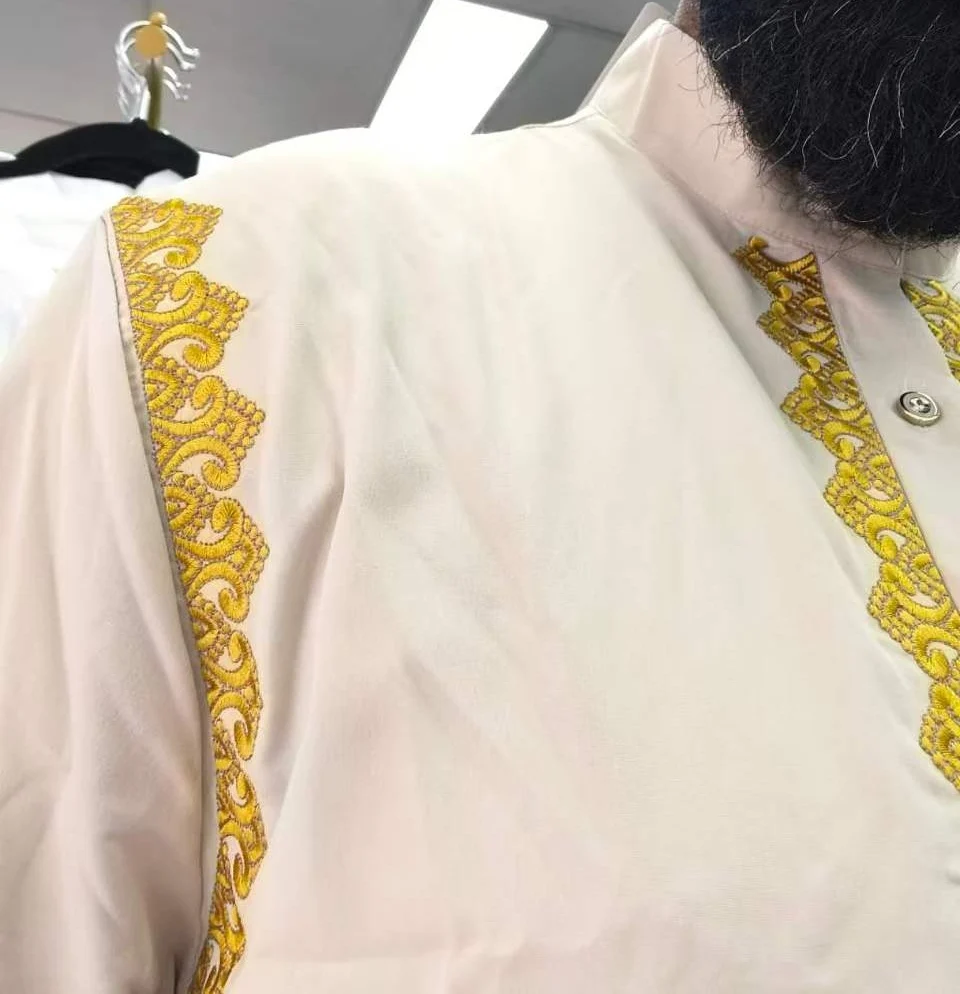 This Collar Embroidered Mwn Thobe in Cream Beige combines traditional craftsmanship with a clean, contemporary finish. Designed for both formal occasions and everyday refinement, it features a classic silhouette with high-quality detailing.