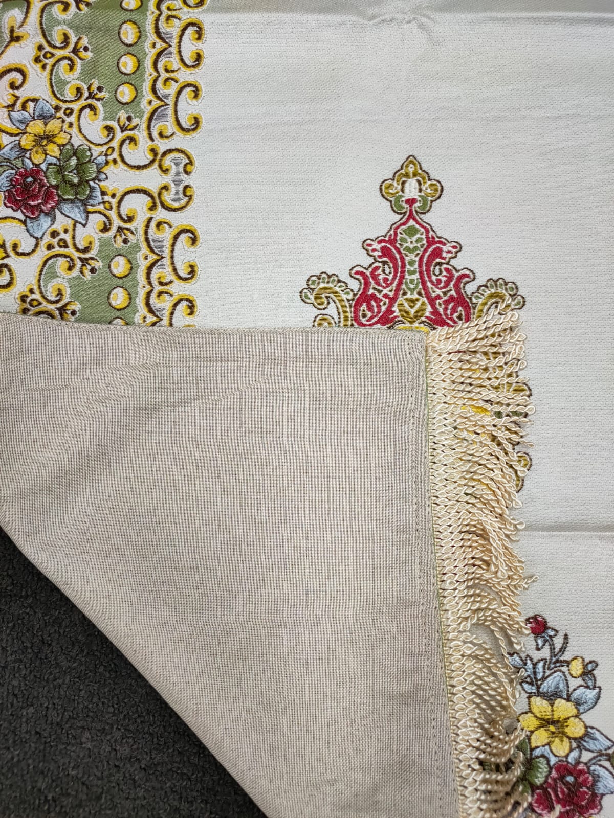 Embrace the timeless beauty of our Embroidered floral prayer rug, where each petal and vine tells a story of devotion and reverence. Compact and versatile, it's the perfect companion for your daily prayers, whether at home or on the move.
