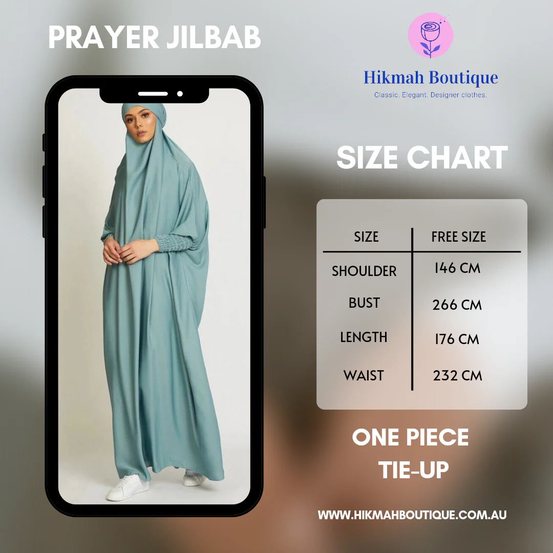 9. Majestic Aqua Pearl Jilbab: Step into majesty with our Aqua Pearl Jilbab. This prayer wear, adorned in an exquisite aqua hue, is crafted for the modern Muslim woman seeking both modesty and sophistication. The tie-up design ensures a personalized fit, making it suitable for various occasions.