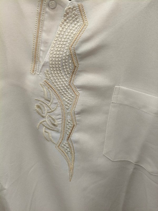 Embroidered Men’s Summer Thobe (Woven Summer Fabric, Short Sleeves) in White